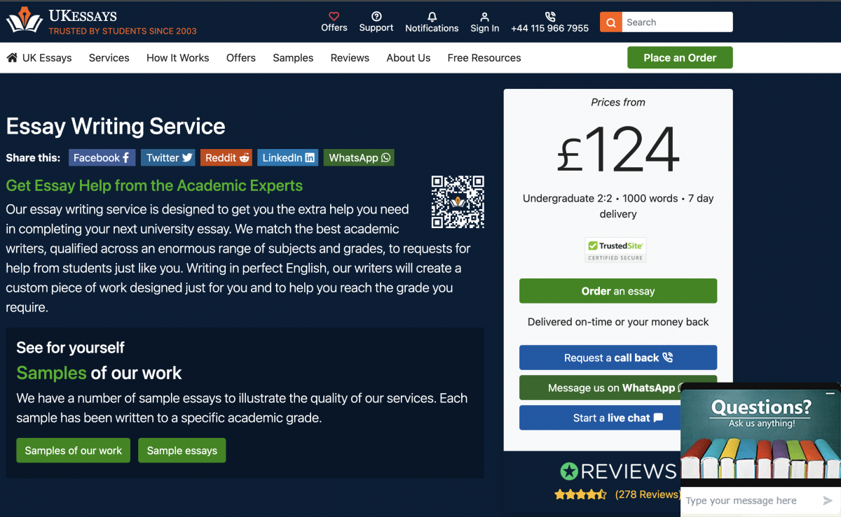 Ein einfaches Essay gibt es bei UK Essays schon ab 124 £. Bild: Screenshot UK Essays