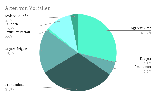 Deshalb ist es auch nicht verwunderlich, dass über 83 % der Wutausbrüche bei Passagieren in der Economy Class vorkommen, die sich am unteren Ende des Klassensystems befinden. Über 72 % der wütenden Passagiere sind zudem männlich. Die Auslöser für die Wutausbrüche sind überwiegend Trunkenheit (31,75 %) oder Angriffslust (29 %).