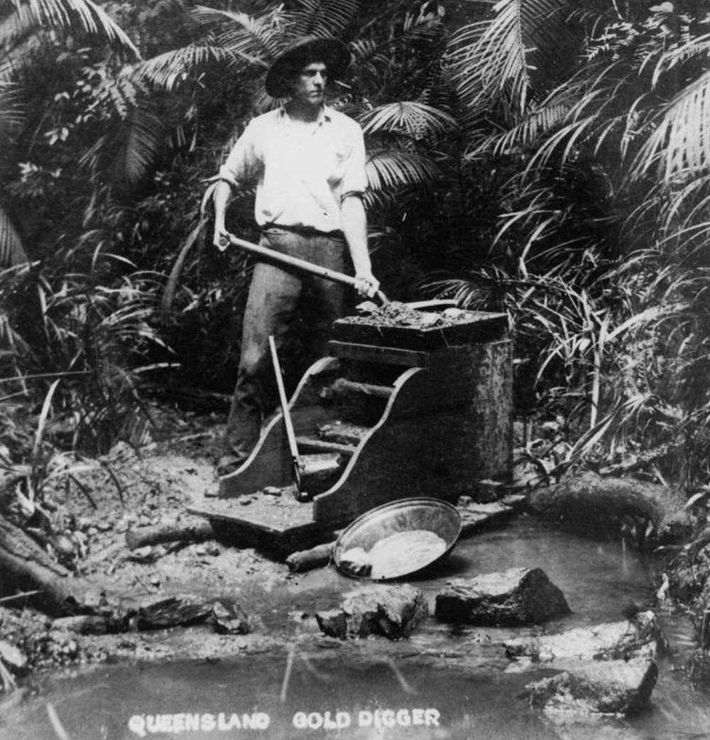 Goldgräberstimmung! Bis vor kurzem schien es noch, als gäbe es für den Bitcoinkurs nur einen Weg: nach oben. “Gold digger panning for gold, Queensland” (Public Domain) von State Library of Queensland, Australien