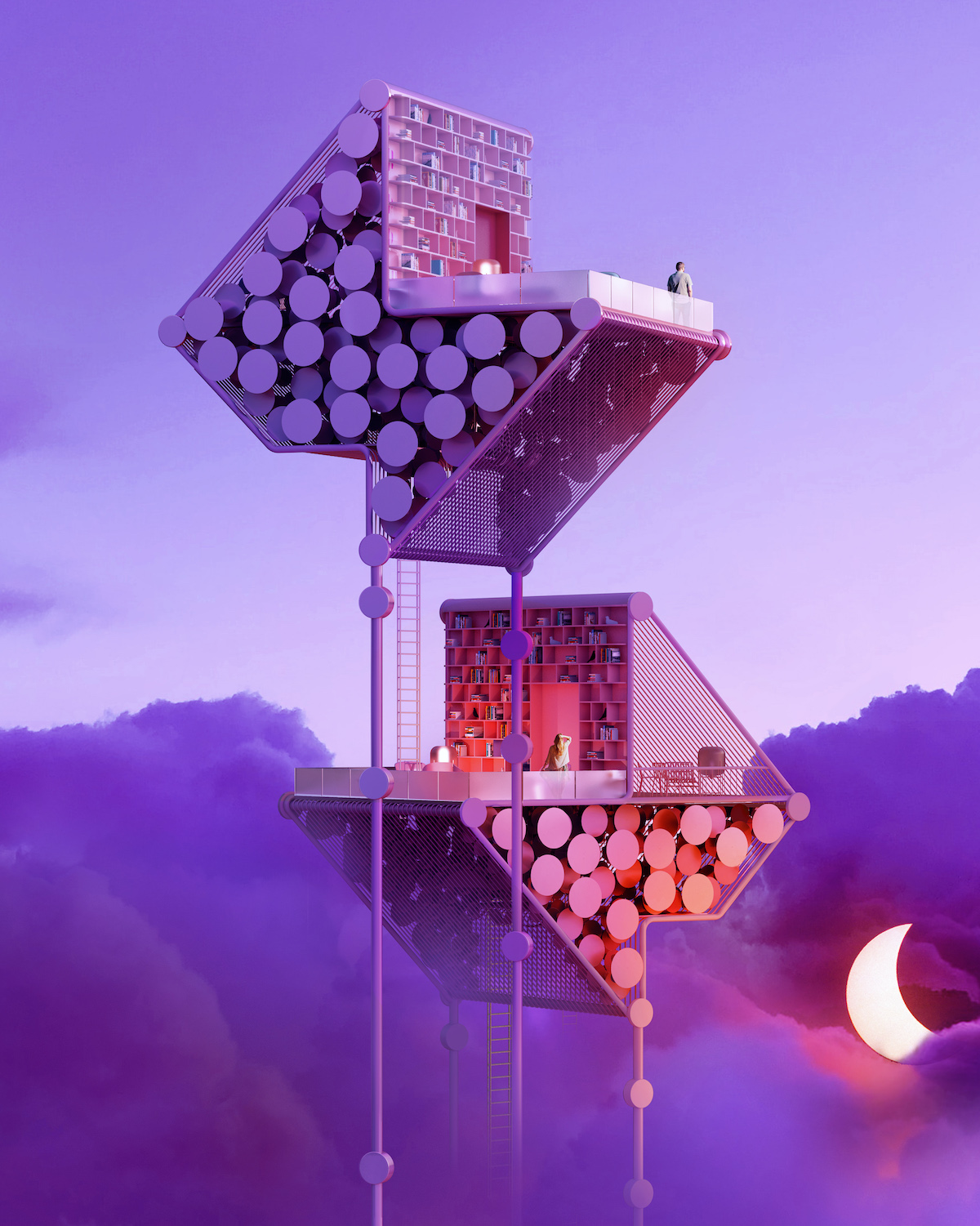 Ich liebe es, von ungewöhnlichen Orten zu träumen. Seit meiner Kindheit spiele ich mit der Idee von phantasievollen Welten und Orten. Als ich älter wurde, begann ich nach Wegen zu suchen, diese kreative Energie in Kunstwerke umzusetzen. Meine architektonischen Erfahrungen veränderten meinen Blickwinkel auf meine Vorstellungskraft. Ich mag es, das Wissen, das ich während meiner Ausbildung und Arbeit erworben habe, mit utopischem Denken zu kombinieren. Ich begann mit neuen Konzepten zu spielen, die auf Abstraktionen und Träumen basierten. Das ist meine Art, mich von herkömmlichen Mustern zu lösen und meinen Geist für neue Ideen zu öffnen. Diese Antirealität erlaubt mir eine Pause von der Monotonie und macht es mir leichter, diesen offenen Geist zu bewahren.