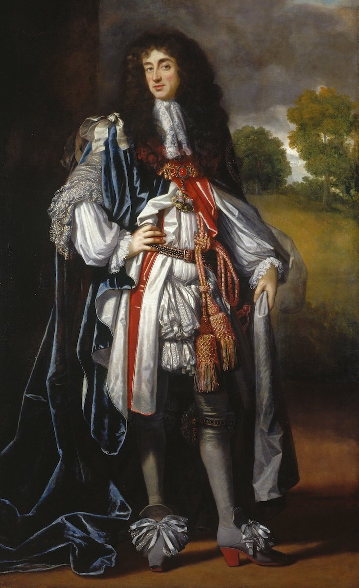 Der Schuh mit Absatz, den die Reiter trugen, wurde als Symbol von Männlichkeit interpretiert und vorwiegend Aristokraten übernahmen diesen Trend. Weit vorn mit dabei war Louis XIV und Charles II von England. Foto: “Charles II of England” von Simon Pietersz Verelst, aus der Royal Collection Objekt 409151 via Wikimedia Commons, gemeinfrei.