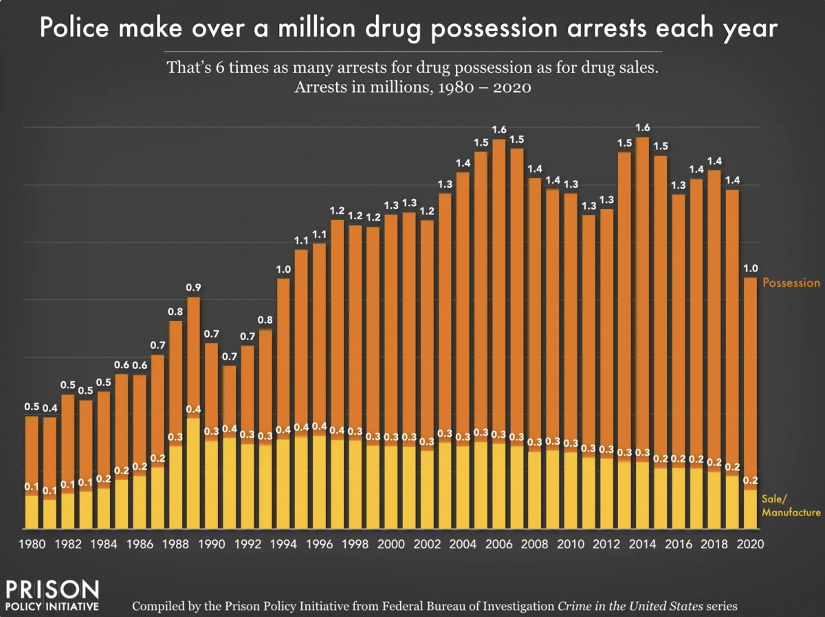 Während Johnny Depp vor Gericht schmunzelnd seine „Drogenbox“ präsentieren kann, weil er ein Rockstar ist, sitzt einer vor fünf inhaftierten Amerikaner:innen wegen Drogenstraftaten im Gefängnis. Täglich werden 347.000 Menschen in den USA im Zusammenhang mit Drogenstraftaten in die ohnehin schon überfüllten Gefängnisse gesteckt. Dabei machen schwarze Amerikaner:innen 62% der Inhaftierten in Zusammenhang mit Drogenstraftaten aus und 38% aller Inhaftierten, obwohl sie nur 12% der amerikanischen Bevölkerung sind. In den USA kommen mehr Menschen für gewaltlose Drogenstraftaten ins Gefängnis, als für Straftaten die Gewalt involvieren.
