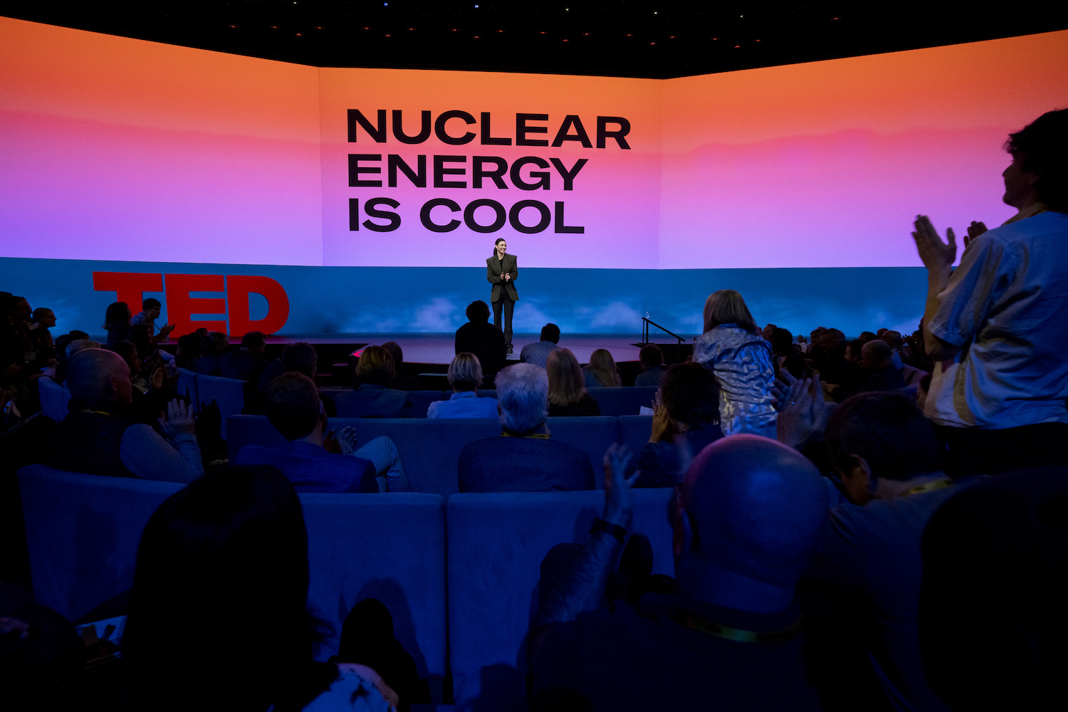 „Was Atomenergie betrifft, wurde der Welt ein schlechtes Meme verkauft. Ein überholtes”, sagt Isabelle Boemeke auf der TED-Bühne im April in Vancouver. Photo: Ryan Lash / TED