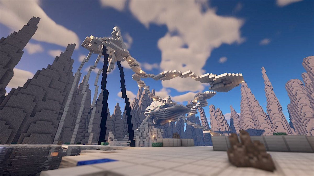 Die schwindelerregend hohen Bühnen des Clubs Matryoshka in der Spielwelt von Minecraft, in seiner berühmten Retro-Pixel-Optik. Foto: CTM x Club Matryoshka.