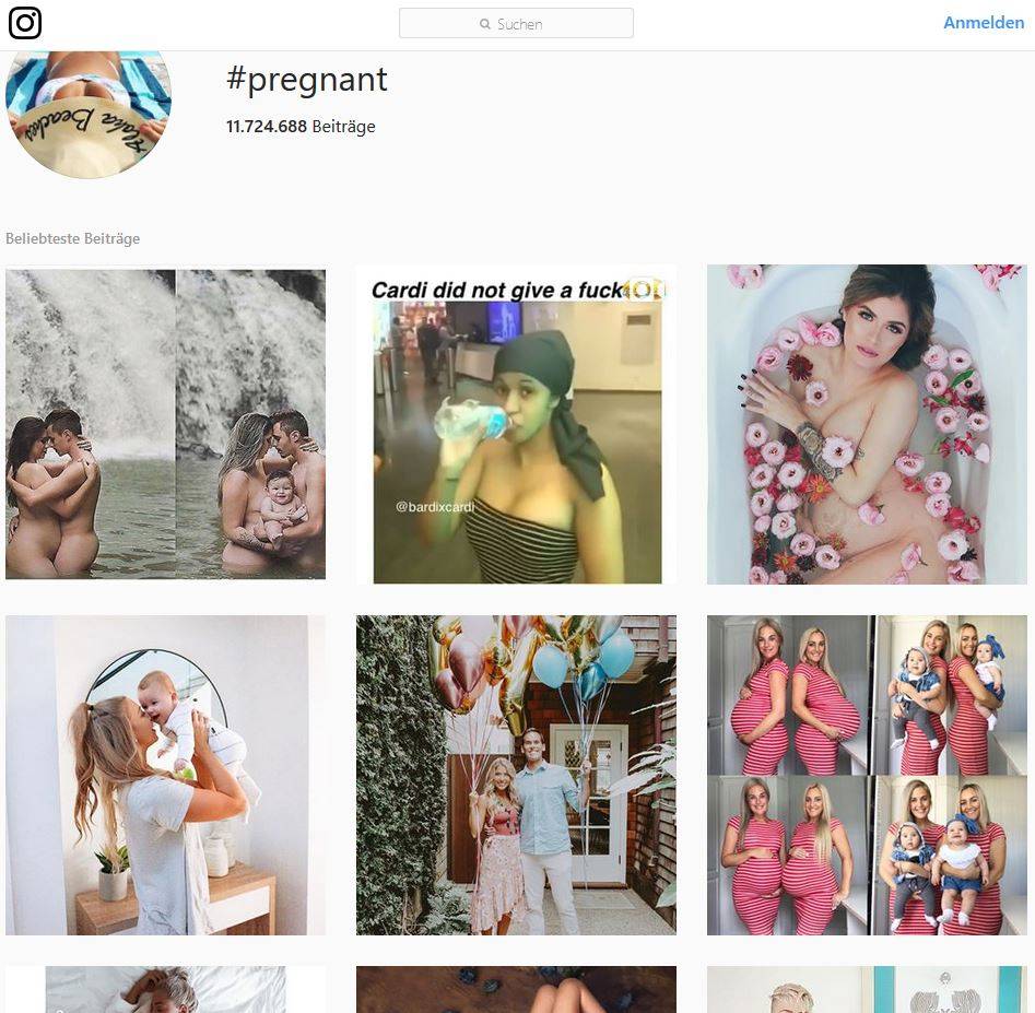 Screenshot Instagram: #pregnant