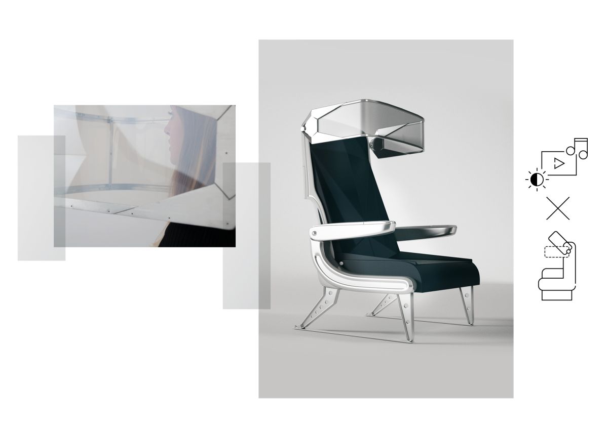Jonas Auda dürfte dann auch, zumindest seiner stereotypen Selbstbeschreibung nach zu urteilen, die Erfindung des konkurrierenden Team „Smart Chair“ interessieren. Der Flugzeugsitz, den es entwickelte, hat nämlich ein Feature, dass das Abkapseln vom Umfeld erleichtert: Bei Bedarf kann man einfach eine schirmartige Vorrichtung ins Sichtfeld klappen. Im besten Fall verhindert der sogar einen Jetlag, da mittels einer speziellen Lichttherapie der Schlaf-Wach-Rhythmus verbessert würde, erklärt Melanie Maucksch, Studentin der JAK-Akademie Hamburg.