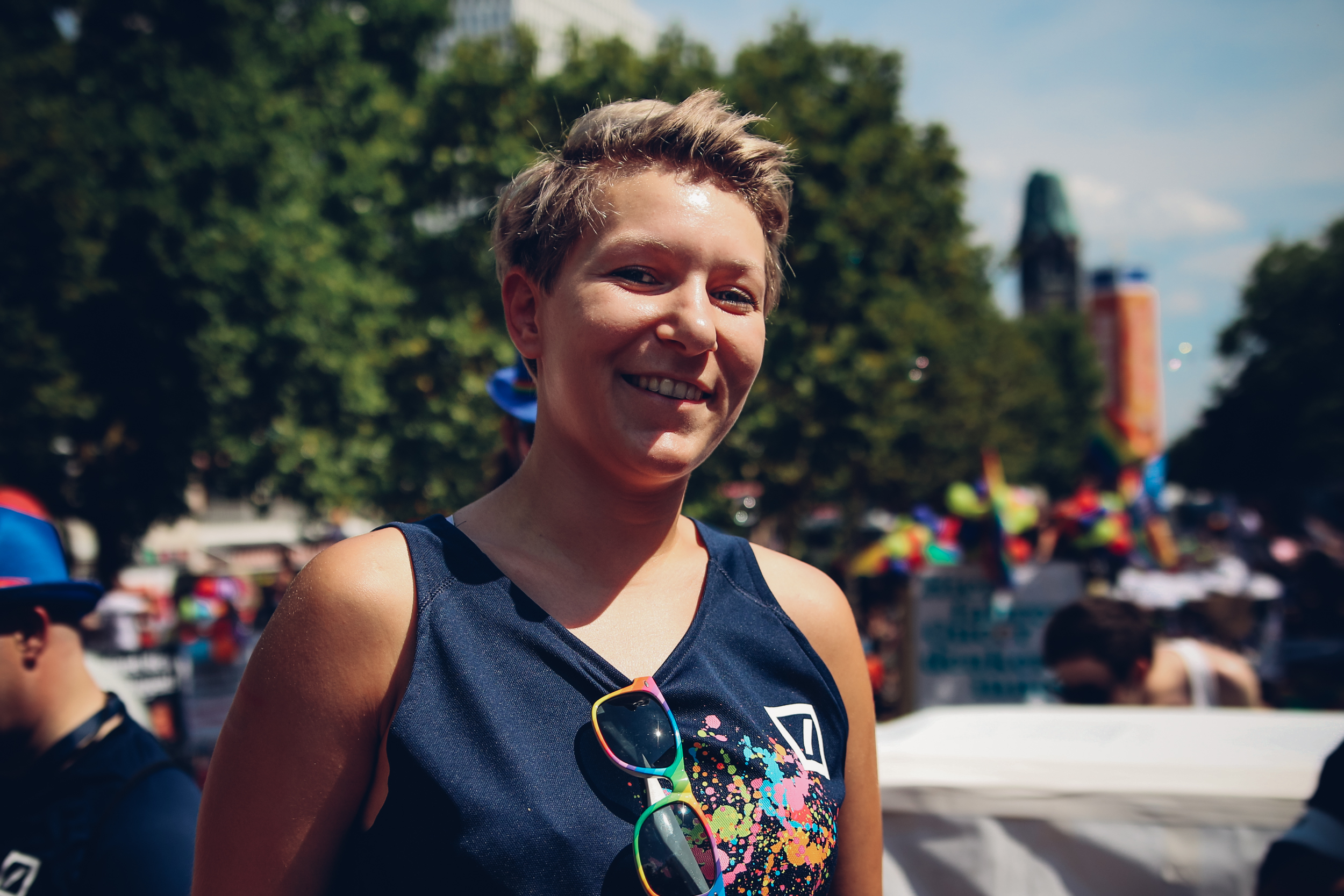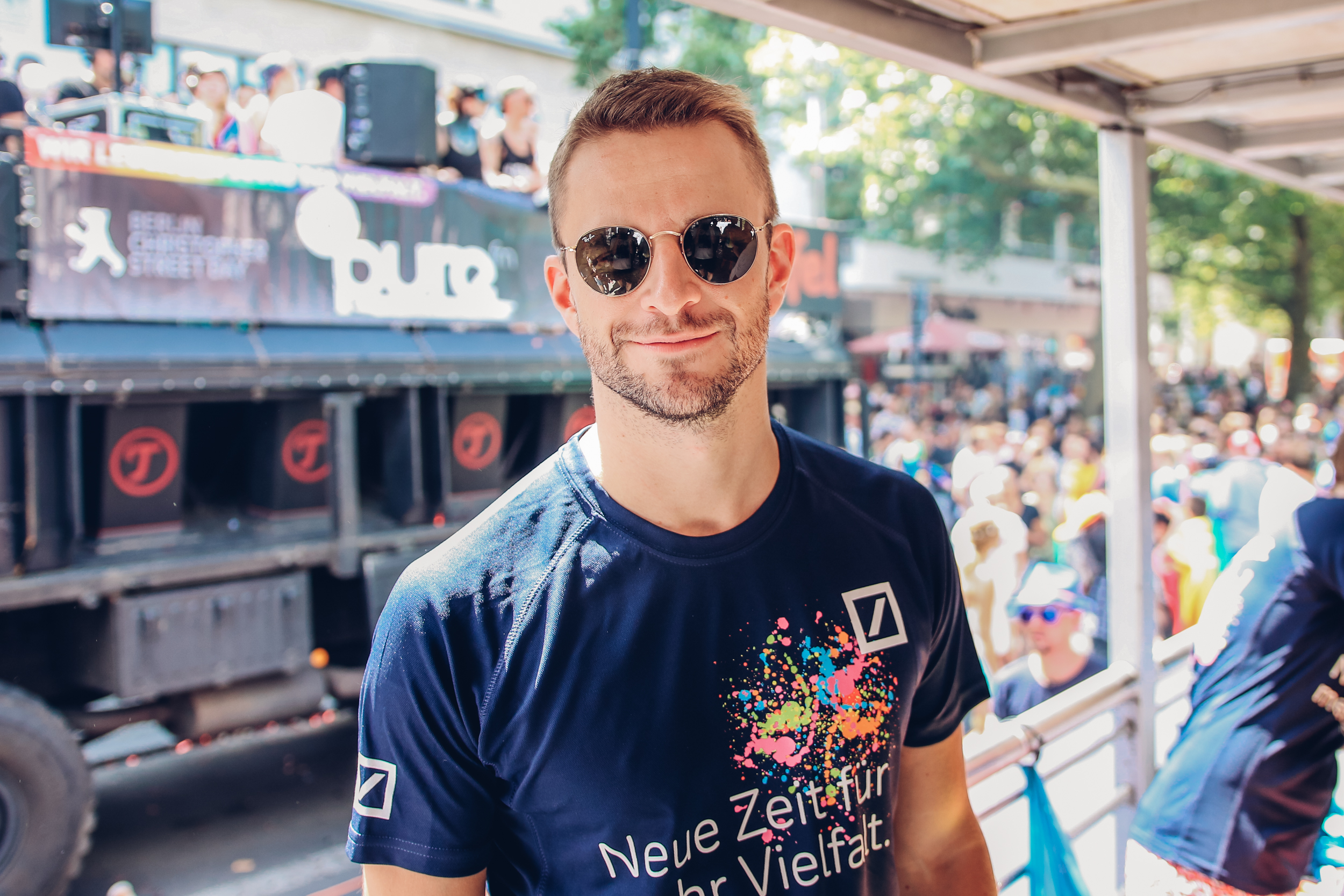 Bei der Parade in Berlin durften wir mit Qiio live dabei sein und, zwischen lauten Beats und kühlen Getränken, auch mit den Mitarbeitern aus den verschiedenen Abteilungen ins Gespräch kommen. Wir haben sie gefragt, warum es für sie persönlich wichtig ist, dass eine Bank zu diesen Themen Farbe bekennt. Dabei ist diese Fotostrecke mit Statements entstanden, die zeigt, dass eine offene, respektvolle Mitarbeiterkultur ohne Diskriminierung der beste gemeinsame Weg für die Zukunft ist. Denn egal ob Hetero, Trans, Inter, Schwul, Lesbisch oder Bi: Wir Menschen sind soziale Wesen und möchten uns auch an unserem Arbeitsplatz frei entfalten können. Und das geht nur mit dem Gefühl, das man so akzeptiert wird, wie man ist.