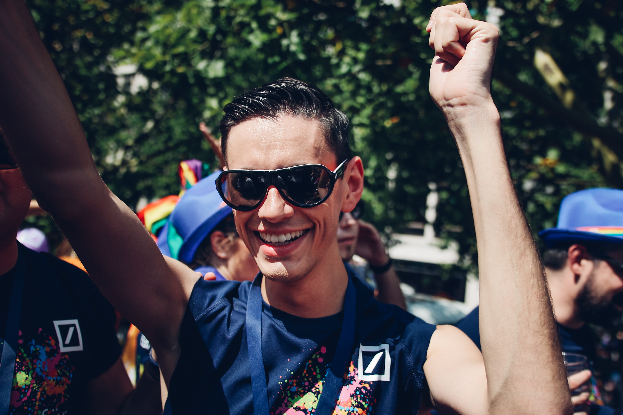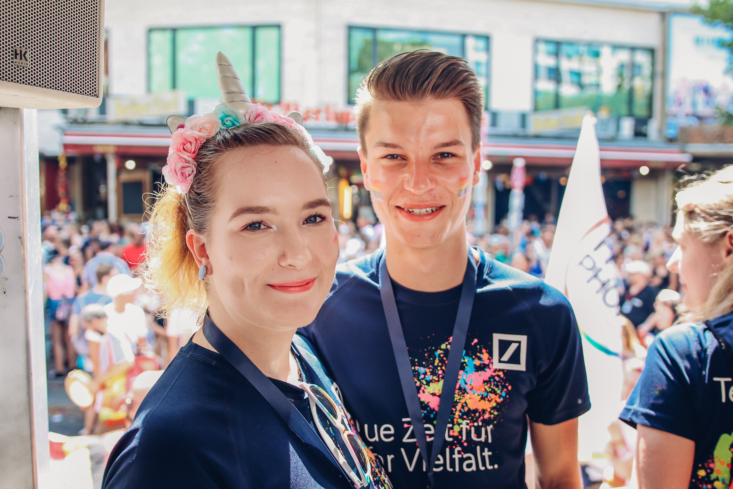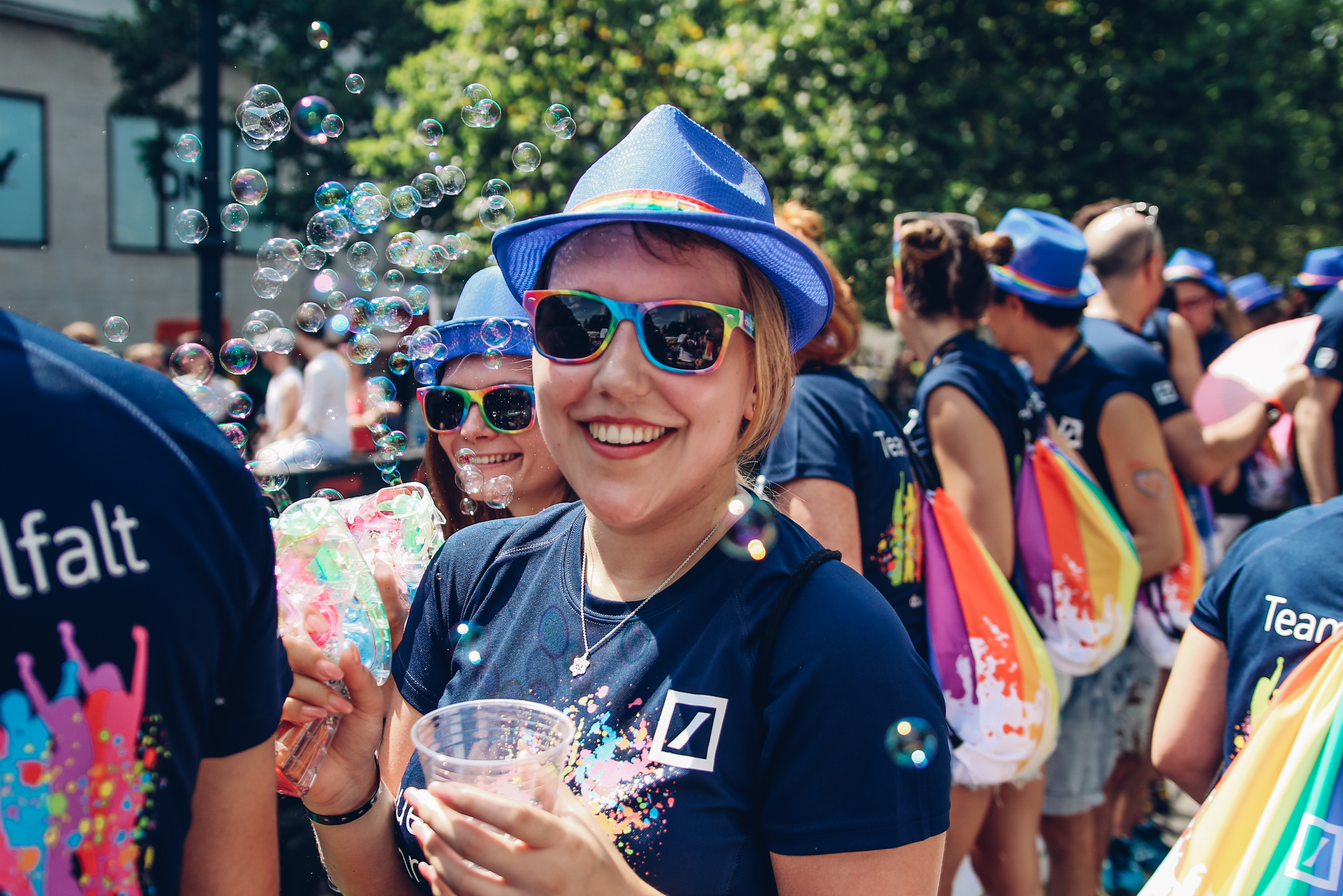 Aber das Engagement der Mitarbeiter der Deutschen Bank wirkt auch im Unternehmen selbst. Seit über 15 Jahren nimmt die Deutsche Bank beim Christopher-Street-Day teil und setzt damit ein Zeichen für Offenheit und Freiheit gegenüber ihren Mitarbeitern und Kunden. Nicht nur in Berlin, sondern weltweit. Die Deutsche Bank war dieses Jahr bei auch bei den Pride-Paraden in New York und London mit einem eigenen Wagen am Start.