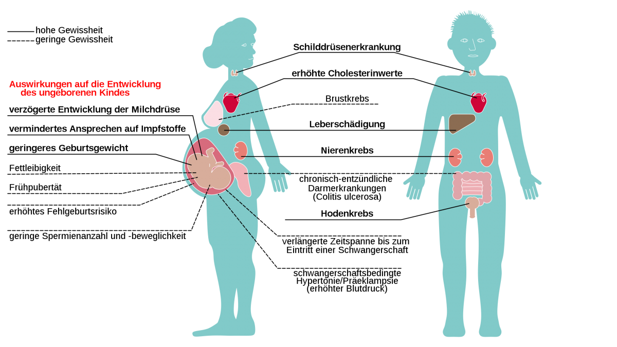 Zwar sinkt die Belastung durch PFAS Chemikalien in Deutschland seit den 1980ern konstant, ist aber immer noch beachtlich. Aktuelle Studien konnten PFAS Chemikalien in fast allen untersuchten Blutproben nachweisen, was nahelegt, dass PFAS im Blut der ganzen Bevölkerung ist. Je länger Mütter ihre Neugeborenen stillten, desto höher war die PFAS Konzentration im Blutplasma.