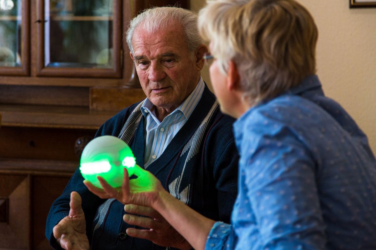Den Statistiken zufolge hat Deutschland die älteste Bevölkerung Europas und schon jetzt ist das Pflegesystem hierzulange am Limit seiner Kapazitäten. Mitansehen zu müssen, wie Eltern oder Großeltern ihre kognitiven Fähigkeiten langsam verlieren und pflegebedürftig werden, löst bei den Angehörigen oft ein Gefühl der Hilflosigkeit aus. So erging es auch drei Absolventen der Hochschule Düsseldorf (HSD), deren Großeltern an Demenz erkrankten. Aus Ohnmacht wurde Kreativität und geboren wurde ichó – ein kleiner, leuchtender Therapieball, der dabei helfen soll, kognitive und motorische Reflexe zu trainieren.