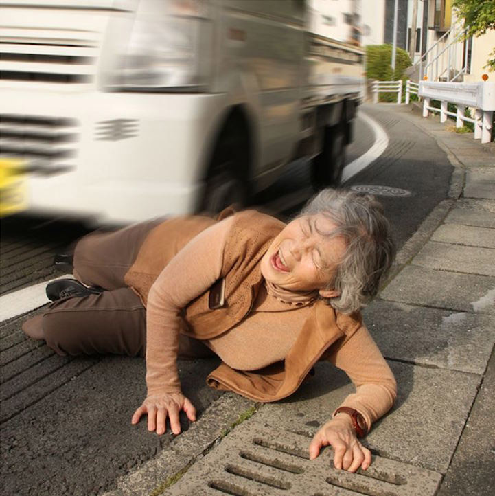 Seit sie die Kamera für sich entdeckt hat, ist sie immer zur Stelle: „Selbst beim Schlafen liegt sie neben dem Bett – für alle Fälle“, sagte die 94-jährige der Stuttgarter Zeitung. In ihren Selbstporträts zeigt sich Nishimoto skurril, kurios und humorvoll: Mal im Bärenkostüm, mal eingewickelt in eine Plastiktüte, mal inszeniert sie einen Fall vom Motorrad, Fahrrad oder vor den Bus. Warum sich Nishimoto in ihrer Freizeit vorstellt, wie sie sich mit gequältem Gesicht vor einen Bus wirft? „Ich mache einfach Fotos, die ich lustig finde“, so Nishimoto.
