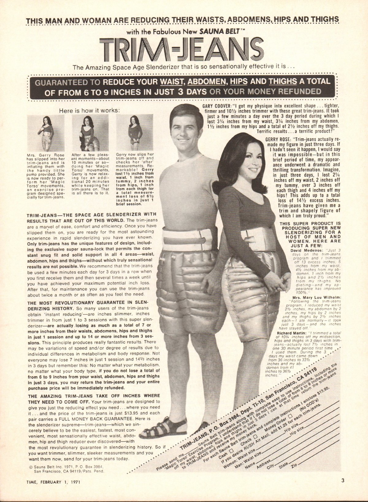 Hier zu sehen ist der Sauna Gürtel “Trim-Jeans”, eine Werbung aus dem Time Magazine vom 1. Februar 1971. Foto: Flickr (CC by 2.0).