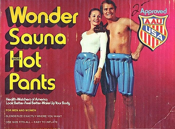 Viele Dinge des Alltags versprechen dem Menschen einen neuen Komfort, der eigentliche nicht nötig wäre, wie diese amerikanische Werbung der “Wunder Sauna Hot Pants” aus dem Jahr 1974. Foto: Joe Wolf.