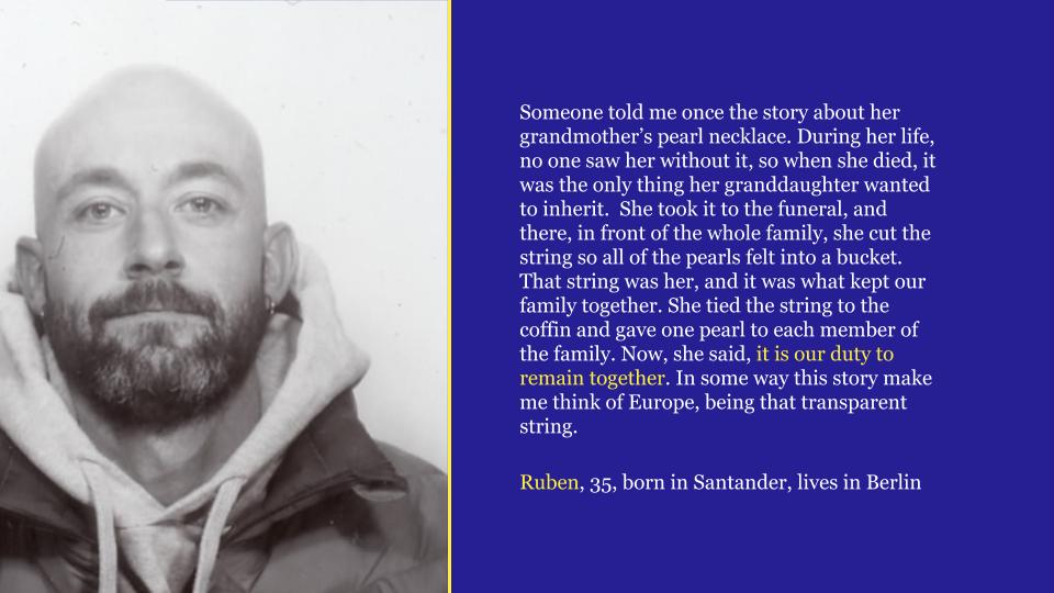 In den letzten Jahren habe ich Europa als Teil meiner Identität angenommen. Die Möglichkeiten, die ich und meine Familie hatten, frei zu reisen, frei zu arbeiten und frei über unser Leben zu entscheiden, hat mich in meiner Arbeit und meinen Werten stark geprägt.