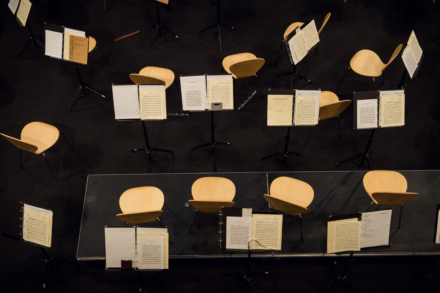 Der Workshop selbst findet in der Berliner Staatsoper auf einer unscheinbaren Probebühne statt. Unter der Leitung von Prof. Dr. Stephan Frucht werden zu Beginn der Veranstaltung 13 Din-A-4-Fotografien leitender Dirigentinnen und Dirigenten auf einem majestätischen Flügel ausgebreitet. Wir, die Teilnehmer, versammeln uns um den Flügel und sollen die Bilder nun ordnen, von links nach rechts, absteigend nach Können und Niveau der darauf abgebildeten Personen. Dass Daniel Barenboim und Simon Rattle gleich nach ganz links und somit ganz vorne eingeordnet werden, ist keine Überraschung. Die Personen auf den anderen Bildern habe ich bis dato nie gesehen. Und den angestrengten Gesichtsausdrücken der anderen Teilnehmer nach zu urteilen, bin ich damit nicht allein.