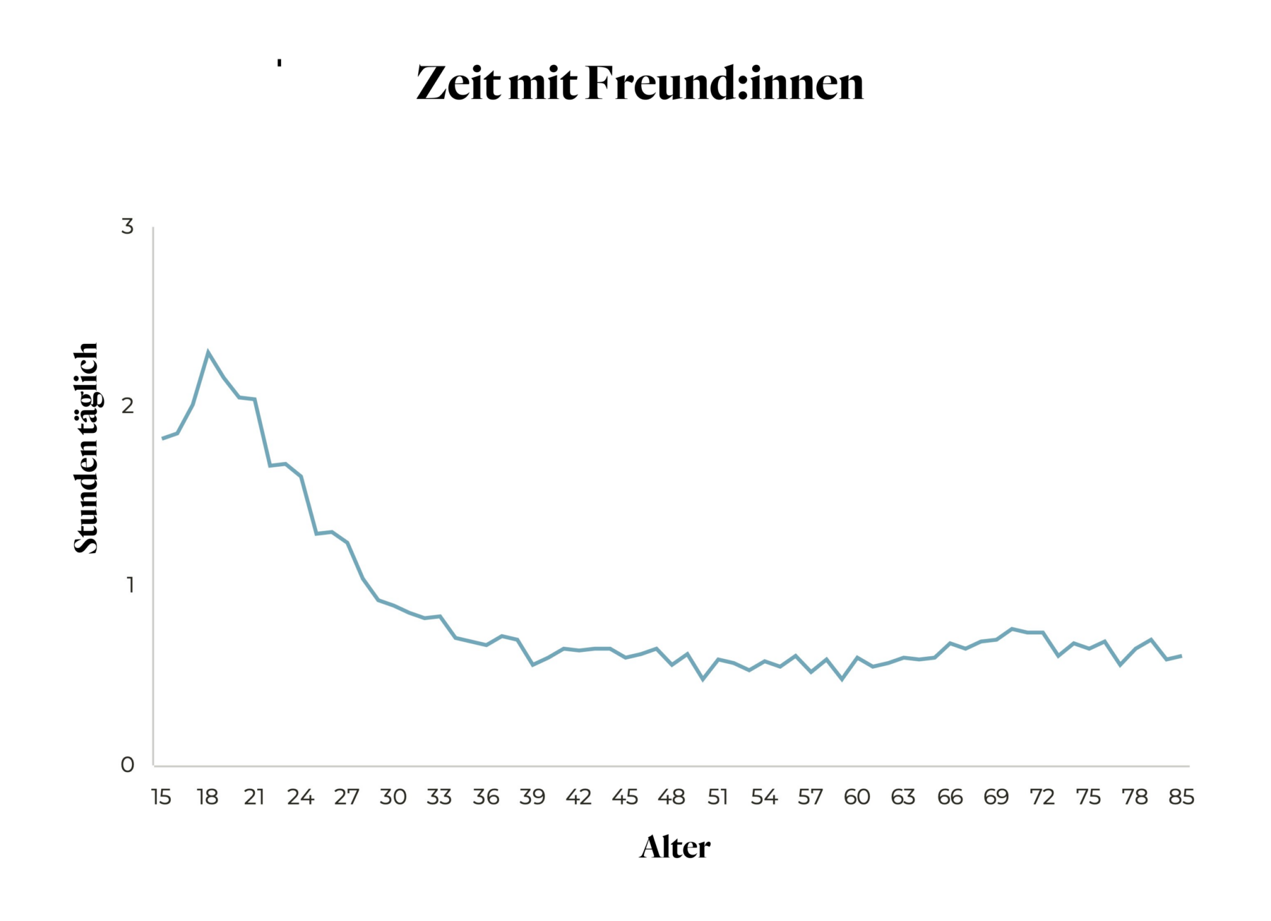 Eine höhere Lebenserwartung heißt auch, dass wir rein theoretisch mehr Zeit mit Menschen verbringen können, die uns wichtig sind. Intuitiv denkt man vielleicht direkt an die Familie – egal, ob das Familienbild sich am klassischen oder an neuen Konzepten orientiert. Aber mit welchen Menschen verbringen wir eigentlich die meiste Lebenszeit? Statistiken aus den USA zeigen, dass sich das im Laufe eines Lebens fundamental verändert. So nehmen etwa die eigenen Eltern mit voranschreitendem Alter immer weniger Raum ein – zumindest durchschnittlich betrachtet.