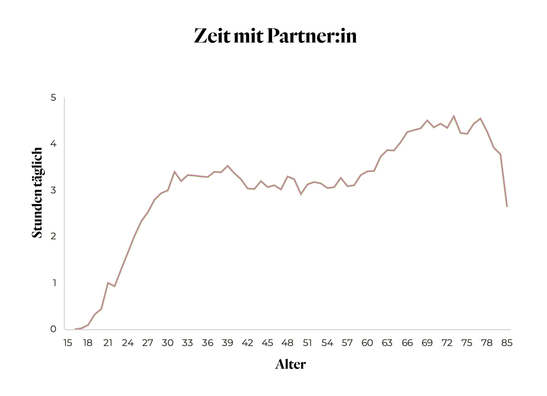 Wer seine Eltern pflegt, nicht direkt von Zuhause auszieht oder vielleicht aus ganz anderen Gründen in räumlicher Nähe zu ihnen lebt, wird andere Erfahrungen machen. Geht man jedoch nach den Durchschnittswerten der statistischen Auswertungen, so verlieren wir unsere Eltern ab ca. 21 Jahren zunehmend aus dem Blick. Oder anders gesagt: Es nehmen andere Menschen ihren Platz an der Spitze derjenigen Menschen ein, mit denen wir am meisten Zeit verbringen.