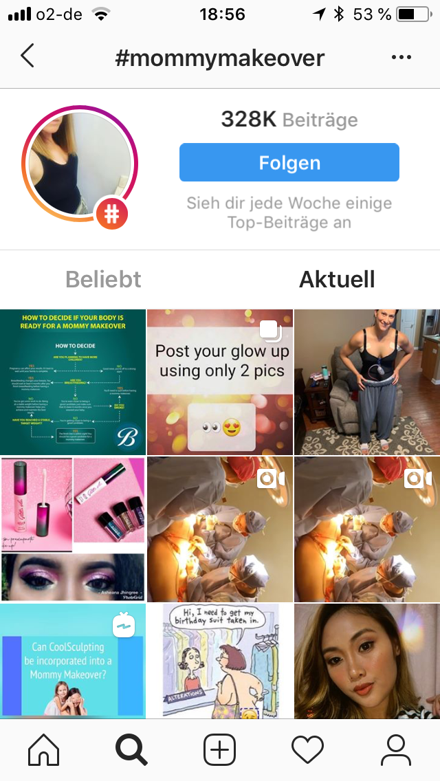 über 328.000 Suchergebnisse des Hashtags #mommymakeover auf Instagram. Foto: Gesa Steeger.