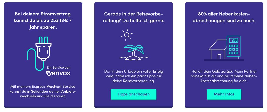 Auch jetzt gibt die App schon Tipps zu Sparangeboten. Dieser Service soll in Zukunft noch ausgebaut werden. App-Screens: Finanzguru