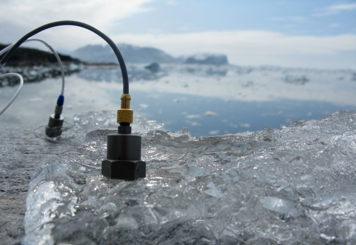 Kirkegaard dokumentiert auf diesem Bild den Klang der Eismasse der Arktis in Grönland. Sein Werk nannte er “Isfald”, was einer von vielen Namen für die Arktis ist. Foto: Jacob Kirkegaard.