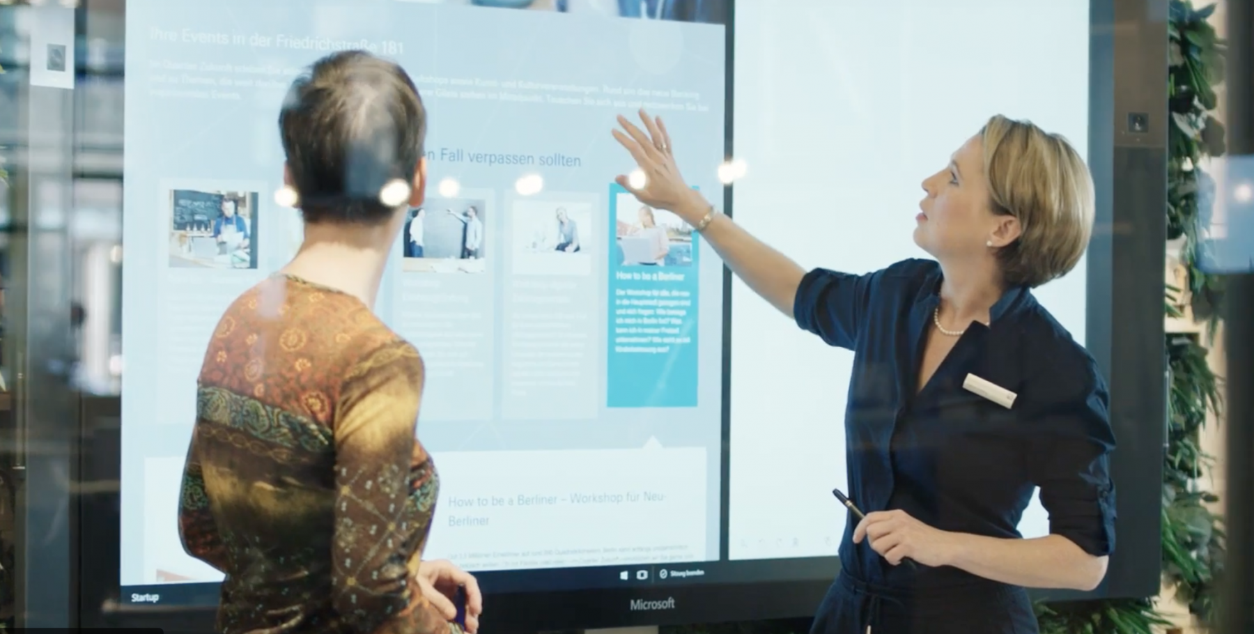Sabine Grube berät eine Kundin im Quartier Zukunft. Foto: Deutsche Bank.