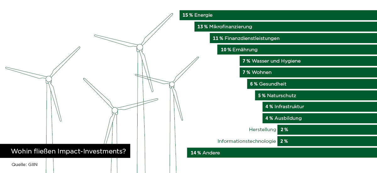 Diese Grafik stellt da, wohin Impact-Investments in Deutschland am ehesten fließen. Foto: Handelsblatt Research Institute.