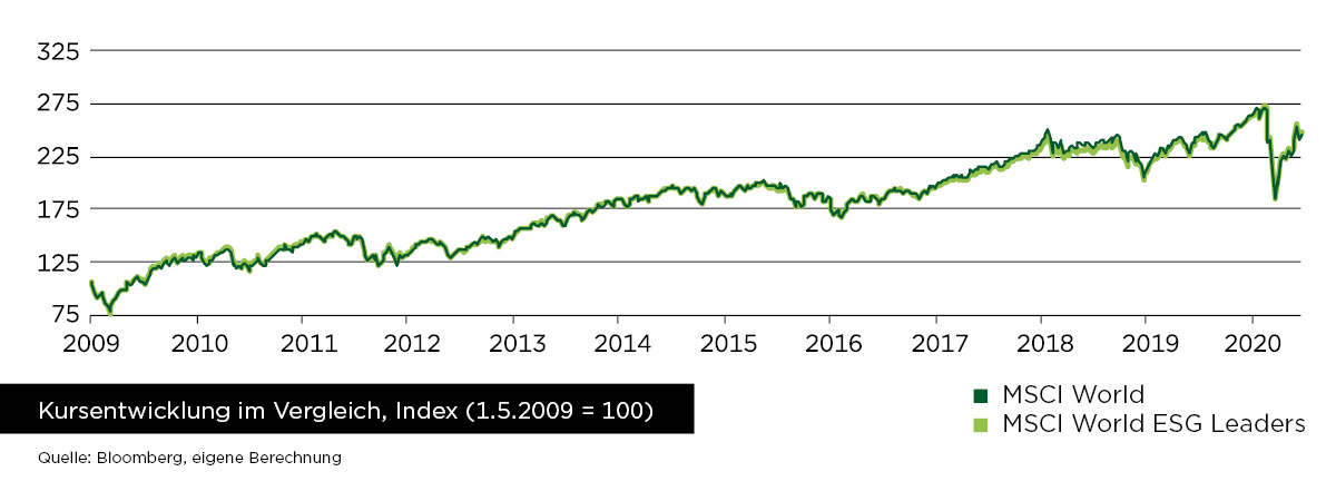 Exemplarisch vergleicht die Bundesbank die Kursentwicklung eines nachhaltigen und eines nicht-nachhaltigen Aktienfonds miteinander. Sie kommt zu dem Schluss, dass die Investition in nachhaltige Unternehmen für Anleger finanziell attraktiv sein kann, zumindest aber nicht nachteilig sein muss. Foto: Handelsblatt Research Institute.
