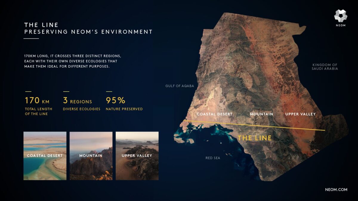 Der ambitionierte Kronprinz Mohammad Bin Salman vermarktet the Line als eine „zivilisatorische Revolution, die die Menschen an erste Stelle setzt und eine beispiellose, urbane Lebenserfahrung bietet, während sie gleichzeitig die Natur bewahrt.“ Dabei blendet er jedoch völlig aus, dass eine Linie die wohl unnatürlichste denkbare Form ist, trennt sie doch beide Seiten wie eine Mauer endgültig voneinander ab und erschafft so ein Gefängnis ohne Entkommen für Mensch und Natur.