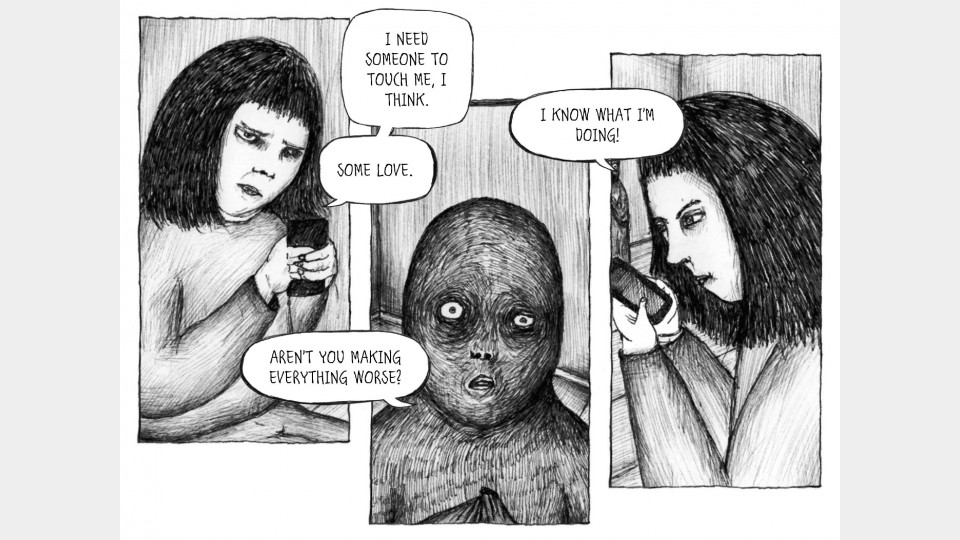 In „Stilstand“ der Grafikkünstlerin Ida Hartmann, die dieses Jahr bei A MAZE prämiert wurde, geht es um die Angstzustände einer jungen Frau während eines Sommers in Kopenhagen. Bild: Ida Hartmann