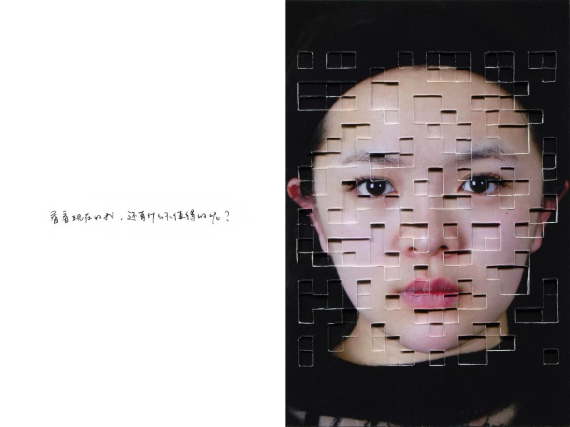 Das Zerschneiden und Zusammenfügen der Fotos post-operativer Frauengesichter ist ein Mahnmal an ein zerlöchertes Selbstbild. Foto: Yufan Lu.
