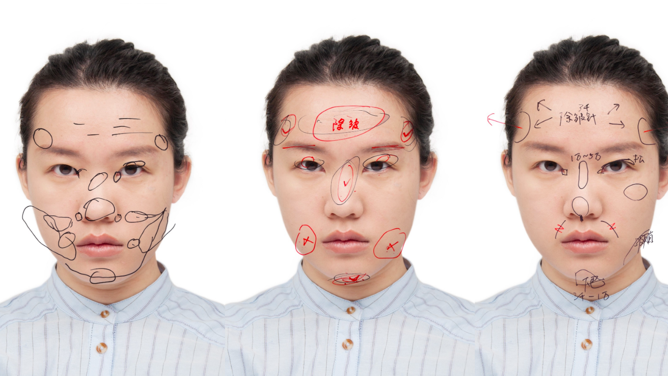 Yufan schickte ihr Foto zur Diagnose an verschiedene Schönheitschirurgen, die ihre Verbesserungsvorschläge in das Foto einzeichneten. Foto: Yufan Lu.